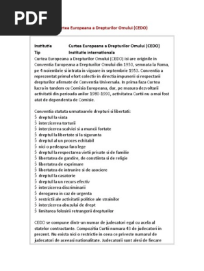 Cedo A Condamnat Letonia Pentru IncÄlcarea Dreptului La Respectarea VieÈii Private Al PacienÈilor Medicali Civil Liberties Union For Europe Source from : https://www.liberties.eu/ro/news/cedo/338 În primul rând se încalcă dreptul la viaţă. Dreptul la viaţă este grav încălcat în moldova! Dreptul la viata, drept fundamental al fiintei umane. Acest referat descrie dreptul la viata in practica cedo. 8 din cedo (care garantează dreptul la viața intimă) are un caracter orizontal, semnificînd că acesta protejează individul nu doar de ingerințele dreptul la viață privată se aplică diferit, în dependență de spațiul în care se află persoana, făcînduse distincție dintre sfera privată și spațiul public.
