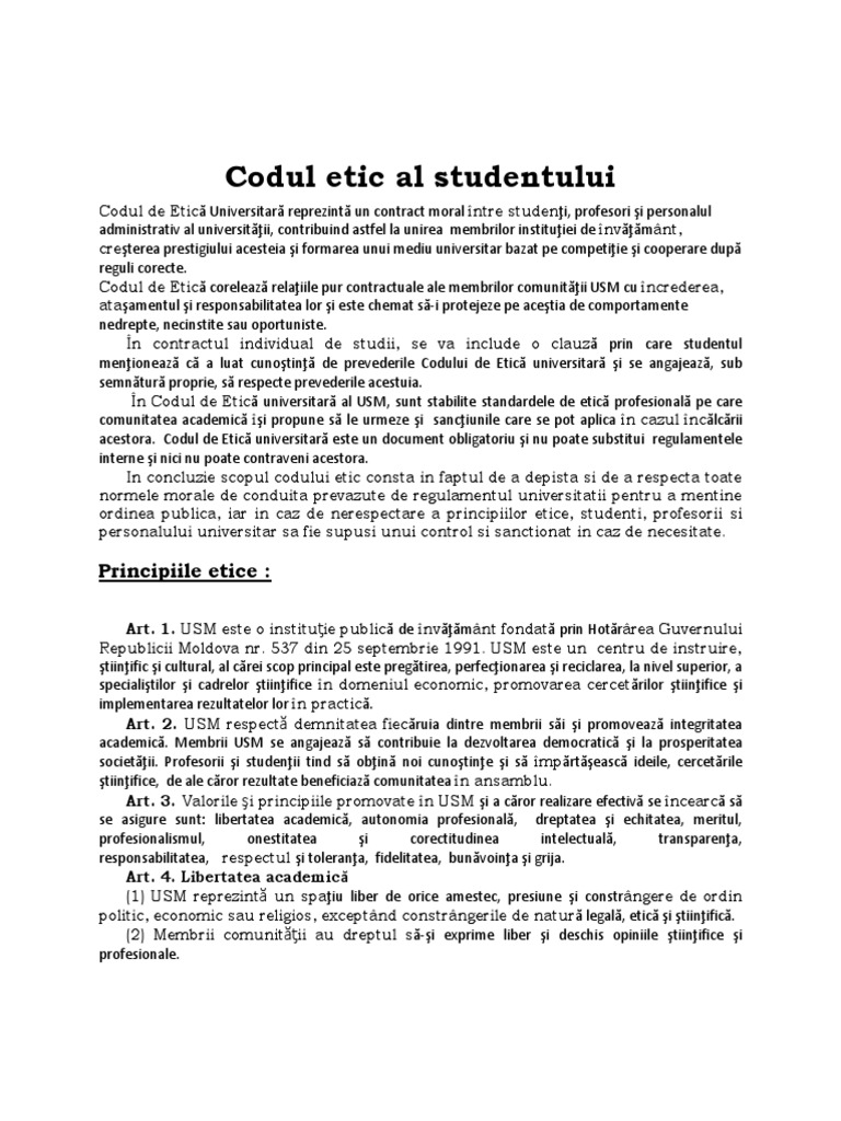 vizitati articolul complet aici : https://www.portalinvatamant.ro/articole/legi-25/codul-etic-profesorii-nu-au-voie-sa-predea-la-clasa-in-care-invata-propriul-copil-2311.html Ministerul educatiei a publicat proiectul codului de etica pentru invatamantul preuniversitar. Este de stiut ca doi profesori cu aceeasi pregatire si care pot obtine rezultate bune, fiecare le. Codul etic al profesiei de contabil stabilește normele de conduită a acestuia și formulează principii fundamentale care trebuie respectate în vederea realizării obiectivelor comune ale unei entități.