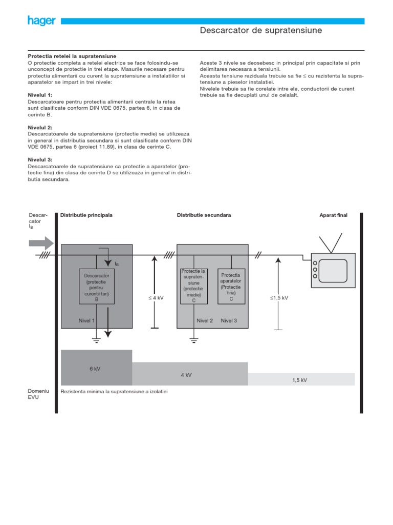 Descriere descarcator supratensiune atmosferica trifazic eti 002440395. Descarcator combinat, descarcator de trasnet si de supratensiune. Pentru o protecţie eficientă la supratensiune, hager vă oferă soluţii concrete: