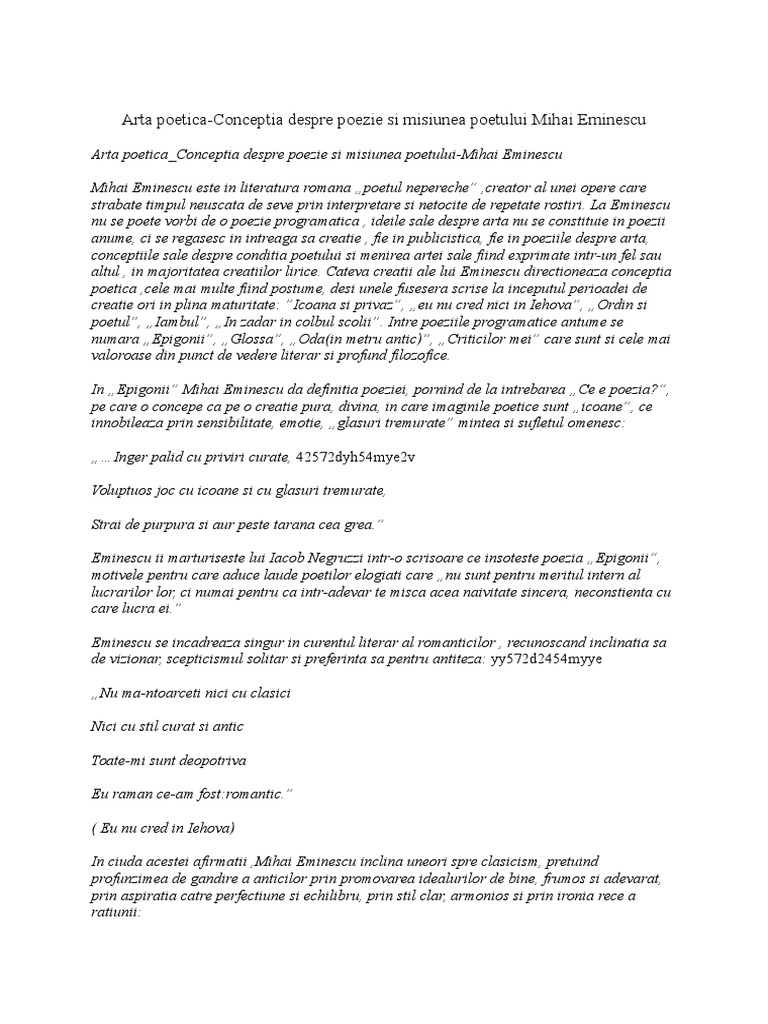 El arte es esa itaca de verde eternidad, no de prodigios. Сохранитьсохранить «arta poetica» для последующего чтения. Arte poetice eminesciene despre mihai eminescu.